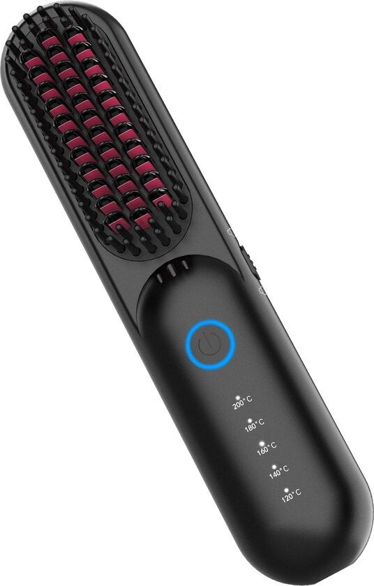De warmteborstel werkt op accu en bereikt 200 graden, perfect voor het stijlen van je haar waar je ook bent. Ideaal voor dagelijkse haarverzorging!